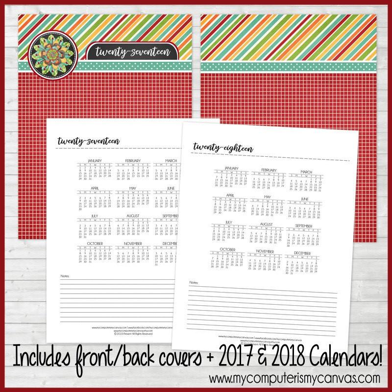 TIPS FOR PRINTING/ASSEMBLY: Print the file either on your home printer or at a copy shop on high quality paper or card stock. For best results, the cover should be printed using your "border-less" print option (available on most home inkjet printers) on glossy photo or brochure paper. This printable can also be printed at your local copy shop as well. If you decide to spiral bind the top, be sure to laminate the covers to add durability prior to binding. Calendar would also work well in a binder.