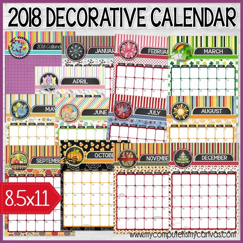 Need a cute desk, wall or kitchen calendar for 2018? I display mine on a clipboard in my kitchen and love changing it out from month to month! You can also print and spiral bind at the top for a cute flip calendar - the file comes with a front and back cover, would make a great gift! The calendar is full color and festive!