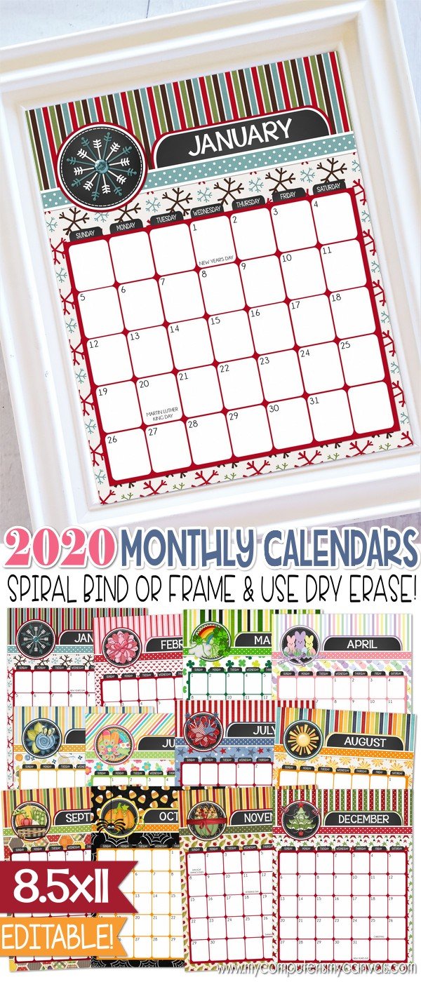 Need a cute desk, wall or kitchen calendar for 2020? I display mine on a clipboard in my kitchen and love changing it out from month to month! You can also print and spiral bind at the top for a cute flip calendar - the file comes with a front and back cover + matching PEN INSERTS (for RSVP Pentel Pens). It would make a great gift! Or - frame and use dry erase on the glass!
