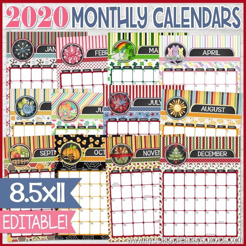 2020 Decorative Desk Calendar - Holiday Themed {EDITABLE} Printable