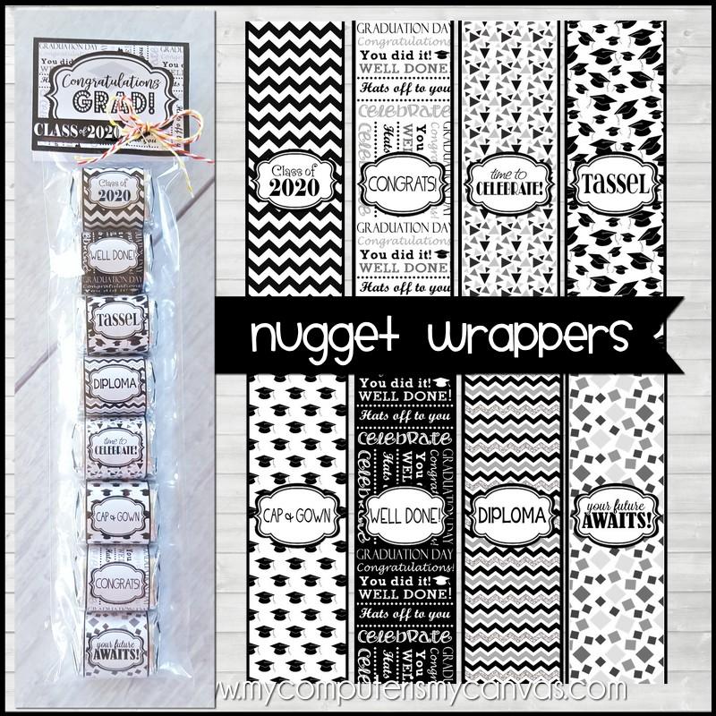 Need a unique graduation gift? This Graduation Gift Bundle includes Subway Art, Nugget Wrappers and a collection of creative gift tags for making a basket or favors! This set is great for a bundled gift, party favors, party decor and more! Subway Art would make a great display at a graduation party, a centerpiece at a graduation dinner, a great gift for a graduate or a memento for their scrapbook! Nuggets can be sprinkled around a centerpiece - tons of ways to use this bundle!