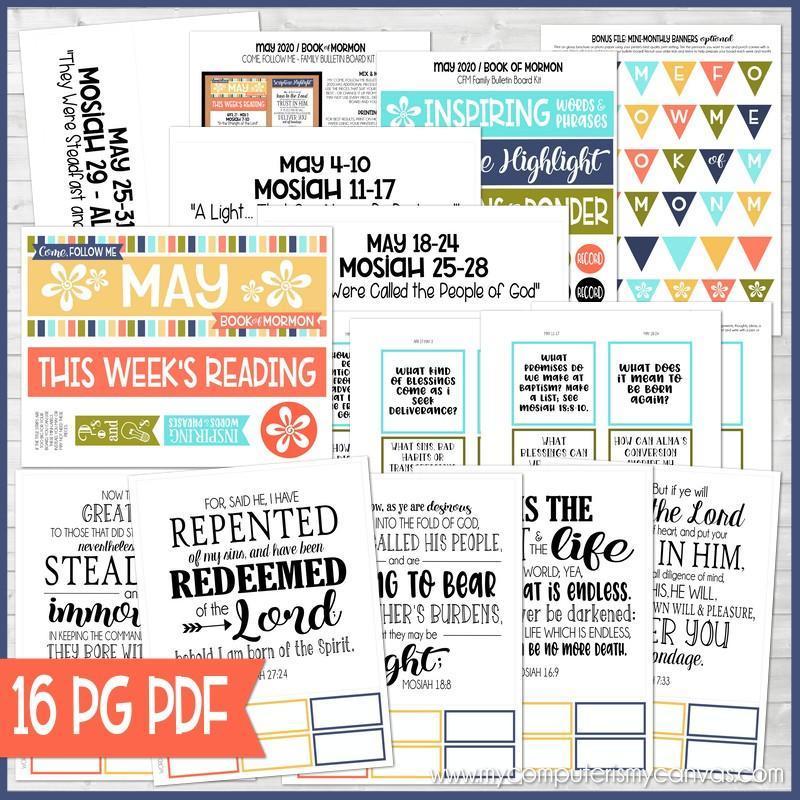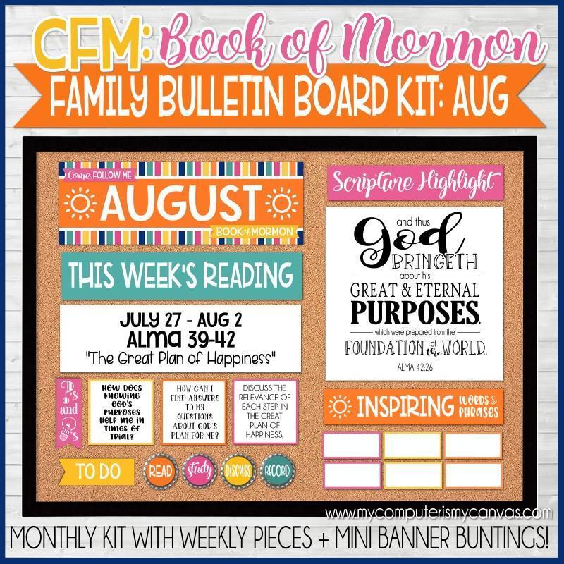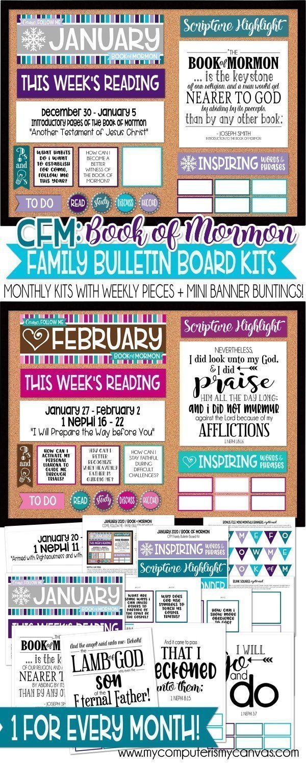 If you are looking for a way to organize and manage Come, Follow Me for Individuals and Families (Book of Mormon/2020) - look no further! This bulletin board kit is a fun, informative way to keep your family on track with the reading schedule!