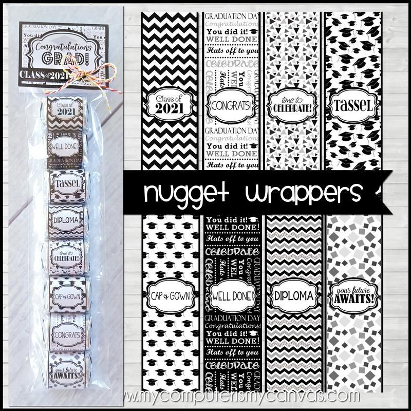 Need a unique graduation gift? This Graduation Gift Bundle includes my 2021 Subway Art, Nugget Wrappers and a collection of creative gift tags for making a basket or favors! This set is great for a bundled gift, party favors, party decor and more! Subway Art would make a great display at a graduation party, a centerpiece at a graduation dinner, a great gift for a graduate or a memento for their scrapbook! Nuggets can be sprinkled around a centerpiece - tons of ways to use this bundle!