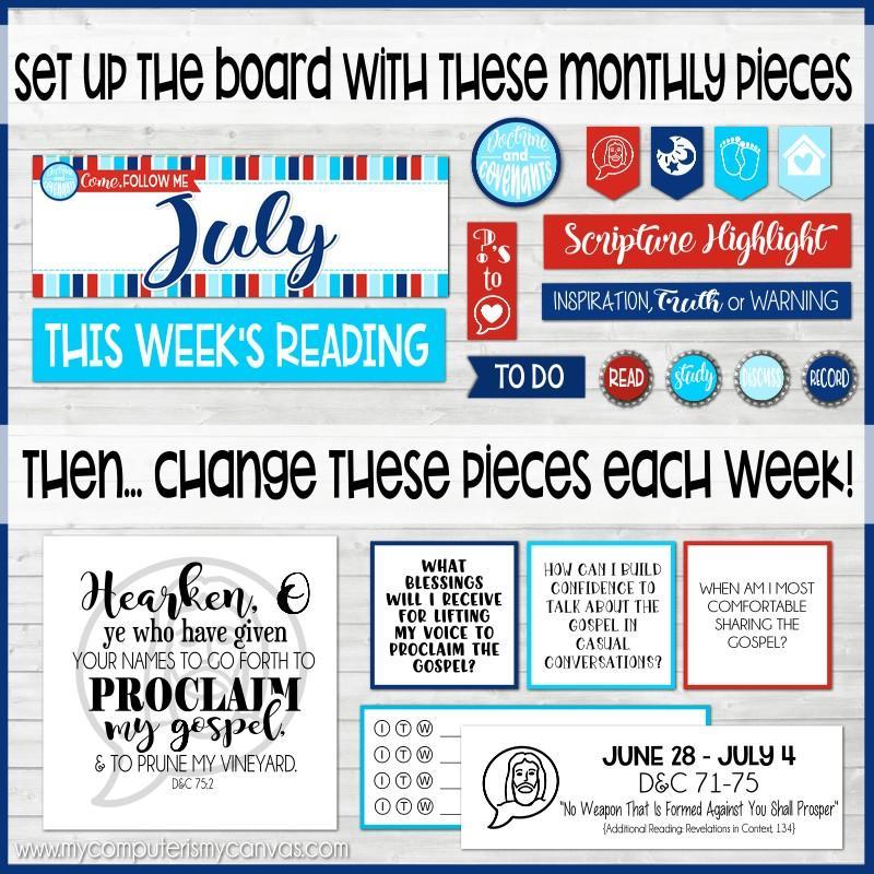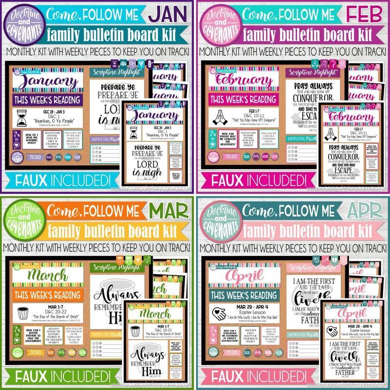 If you are looking for a fun, visual way to display and remember Come, Follow Me each week - look no further! This bulletin board kit printable is a quick, easy and informative way to keep your family on track with the reading schedule... AND with a special weekly icon, a verse highlight and 3 thoughtful questions - it can also help jump start your family discussion!