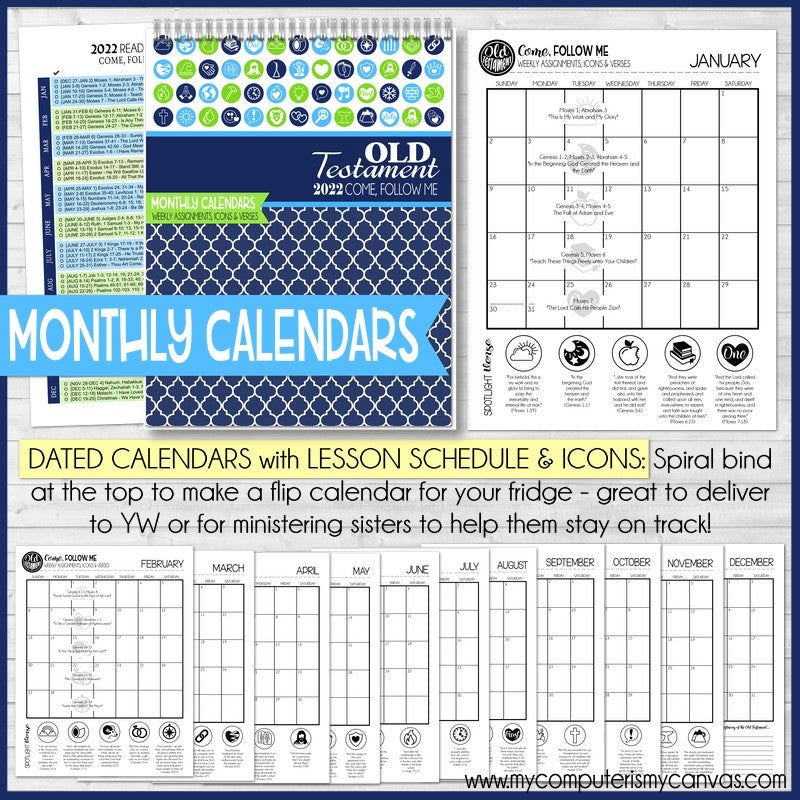 • MONTHLY CALENDAR (with icons & highlight verses)'
