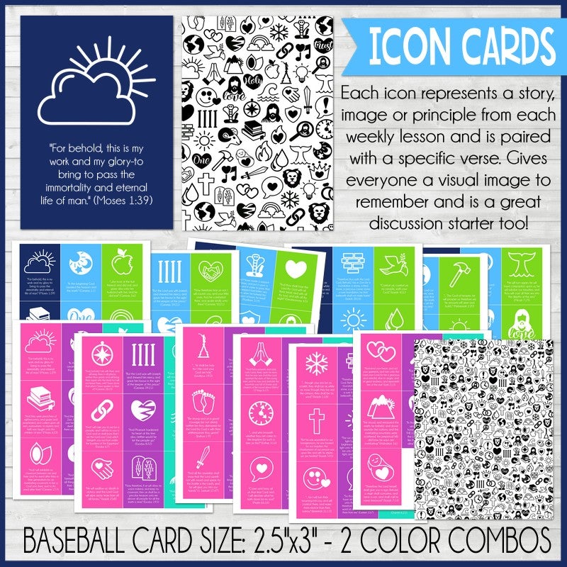 • ICON CARDS (baseball size) with highlight verse (2 color combos)