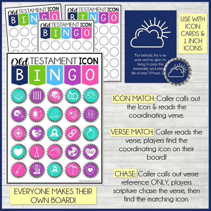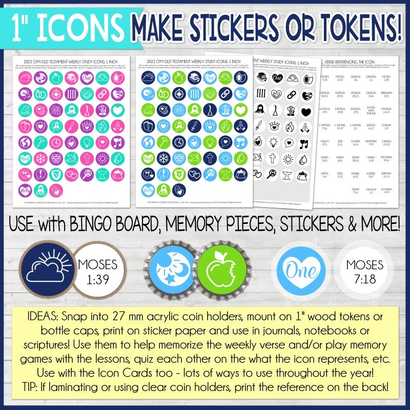 I love icons!! They are fun, easy to remember and can even spark meaningful discussion! I picked a simple spotlight verse from each lesson that also reflected a main principle from the lesson... then designed an icon to visually represent the verse. Use the icons ALL YEAR to engage your family in discussion, frame fun games that foster learning, create activities around them, use them as reminders and rewards - AND use them to play easy "Come Follow Me" games to quiz from past lessons!By the end of the year - they'll remember the lessons because they played and had fun with the icons - and hopefully memorized the verses in the process!