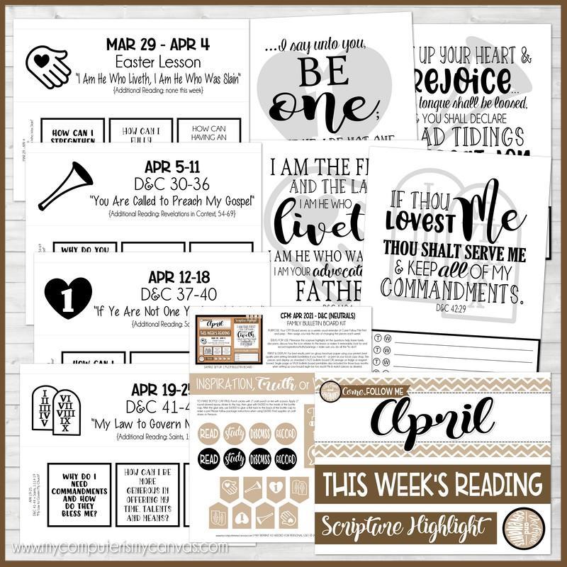 CFM D&C Family Bulletin Board Kit + FAUX Sheets {APR 2021; neutrals} PRINTABLE