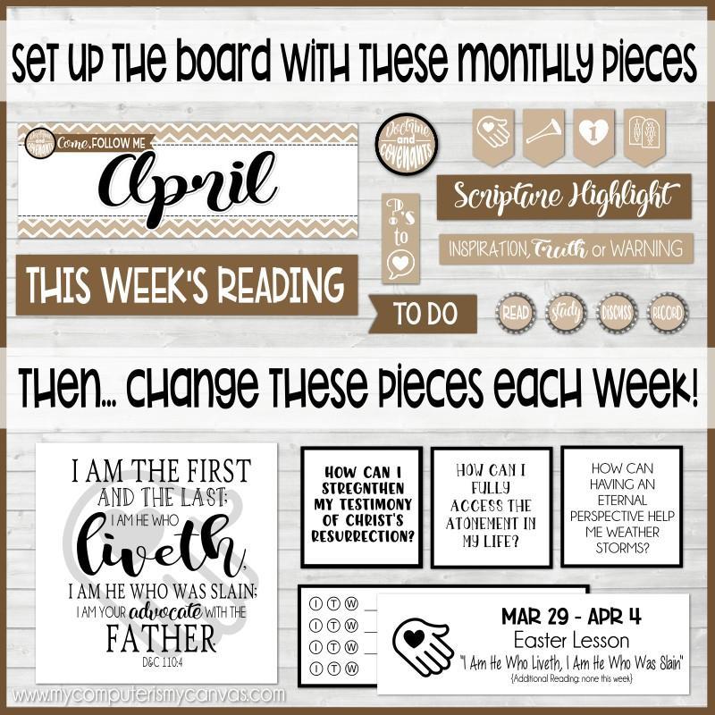 If you are looking for a fun, visual way to display and remember Come, Follow Me each week - look no further! This bulletin board kit printable is a quick, easy and informative way to keep your family on track with the reading schedule... AND with a special weekly icon, a verse highlight and 3 thoughtful questions - it can also help jump start your family discussion!