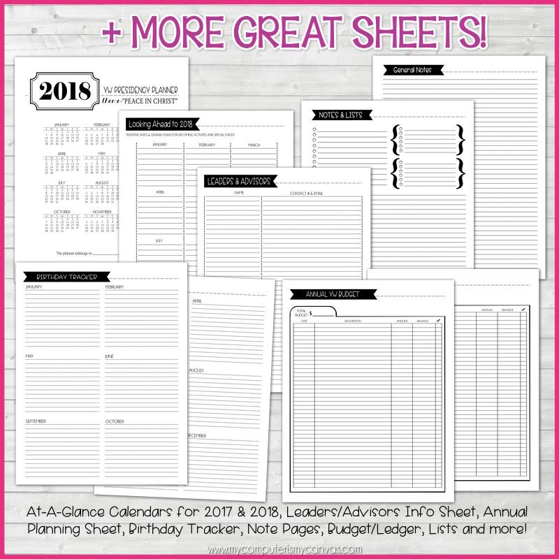 2018 YW Presidency Planner {+Sept to Dec 2017} PRINTABLE