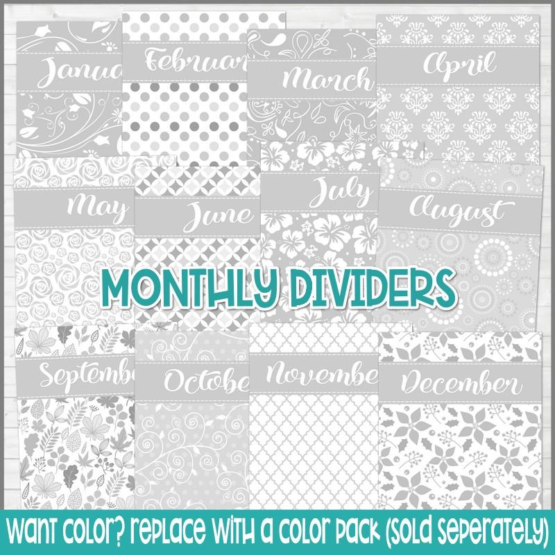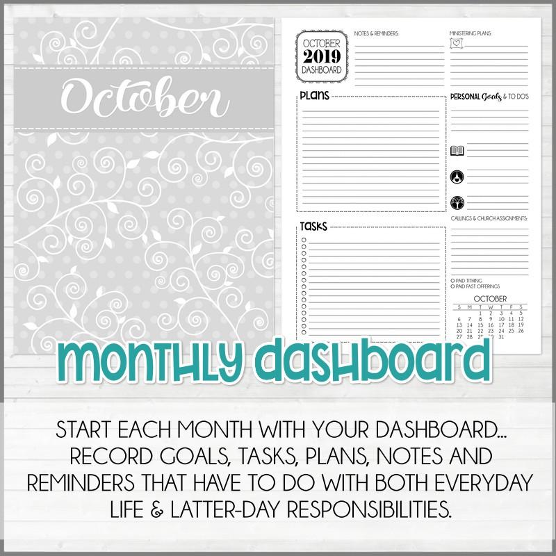 MONTHLY DASHBOARD: Start each month with your dashboard... record priorities, tasks, to do's, goals and more to keep you on track with your personal, church and family commitments. Each month also has dividers to make navigation easy. Want colored dividers instead... grab a Color Pack!