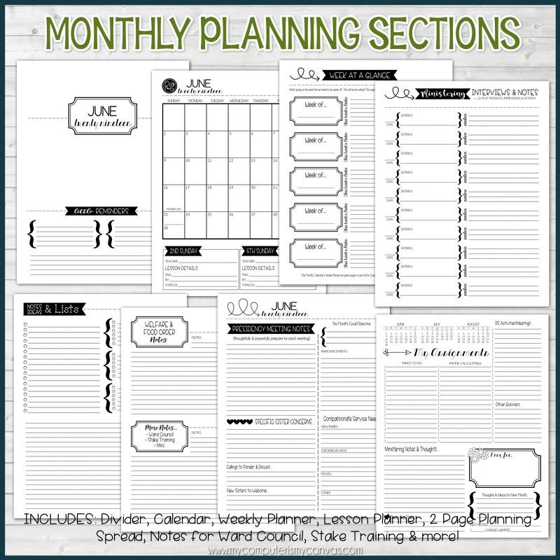 INCLUDED IN THIS LISTING: This listing includes a 140 page PDF file + a PDF with Covers for each member of the Presidency (including a blank one), a sheet of printable sticker/divider tabs and matching pen inserts and bottle cap image for making planner accessories! A MORE detailed list of what is included is mentioned below: