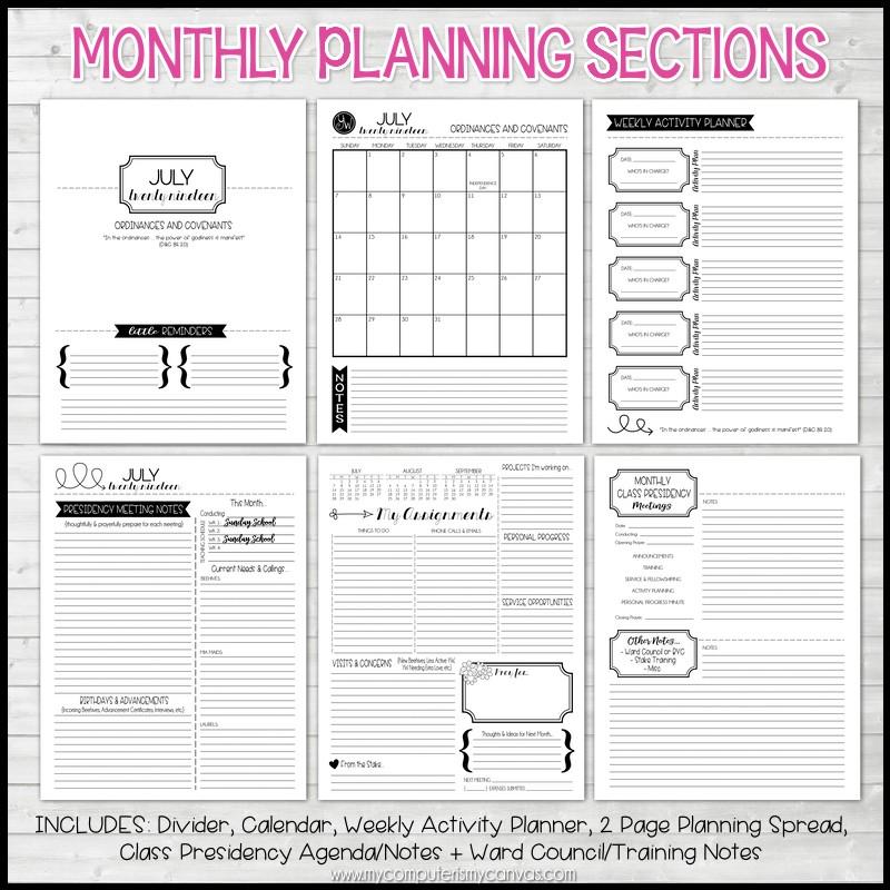 - Monthly Notes Section (Ward Council, Stake Training, etc.)