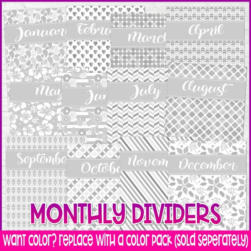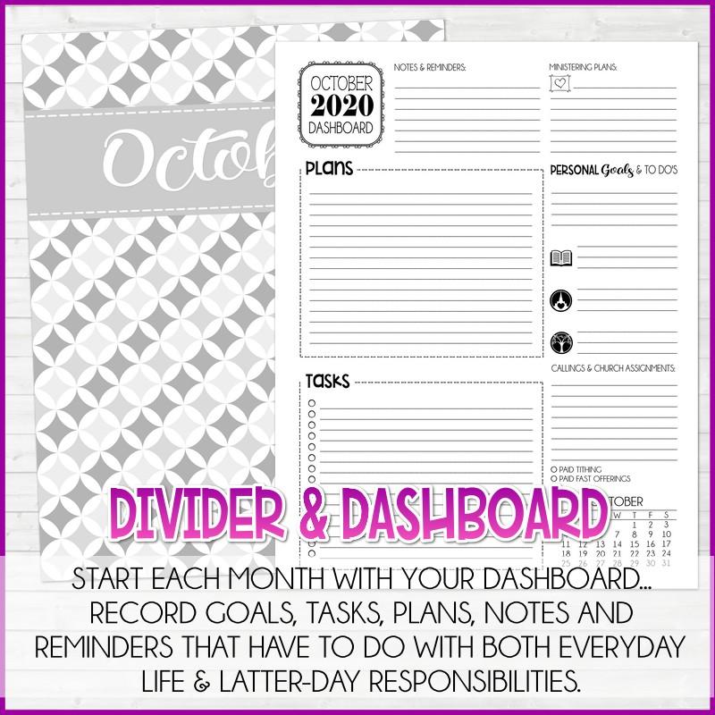 MONTHLY DASHBOARD: Start each month with your dashboard... record priorities, tasks, to do's, goals and more to keep you on track with your personal, church and family commitments. Each month also has dividers to make navigation easy. Want colored dividers instead... grab a Color Pack!