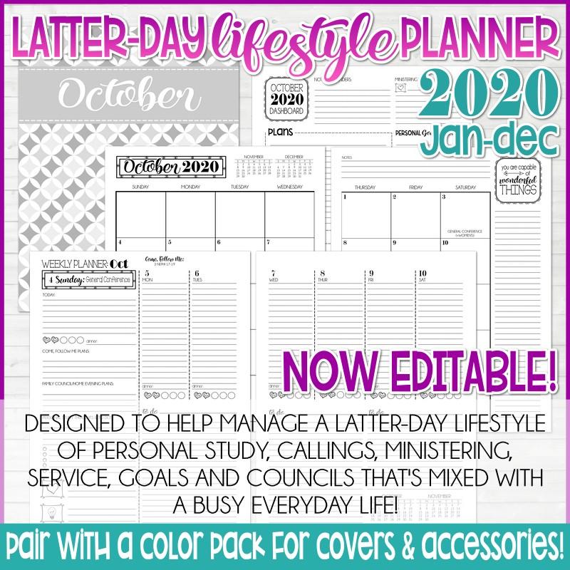 2020 Latter-day Lifestyle Planner {Inside Pages Only} EDITABLE Printable