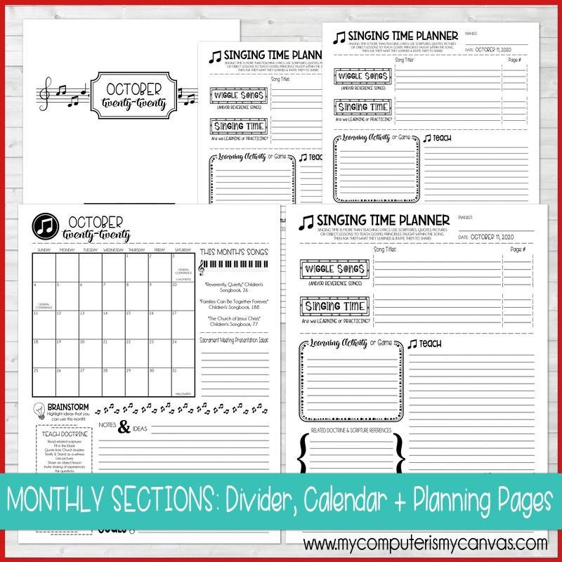 Singing Time in Primary isn't just teaching lyrics anymore, it's now centered on teaching gospel principles through music and my new layout will help you tackle this exciting new format! This planner will help you keep all of your plans, thoughts and ideas organized and ready to go each week.