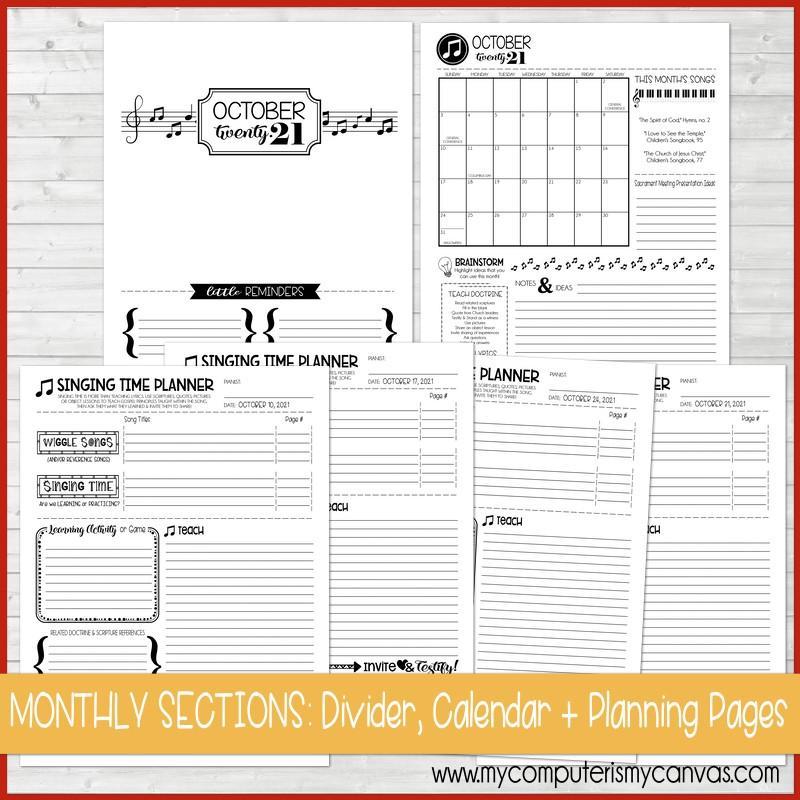 Singing Time in Primary isn't just teaching lyrics anymore, it's now centered on teaching gospel principles through music and my new layout will help you tackle this exciting new format! This planner will help you keep all of your plans, thoughts and ideas organized and ready to go each week.