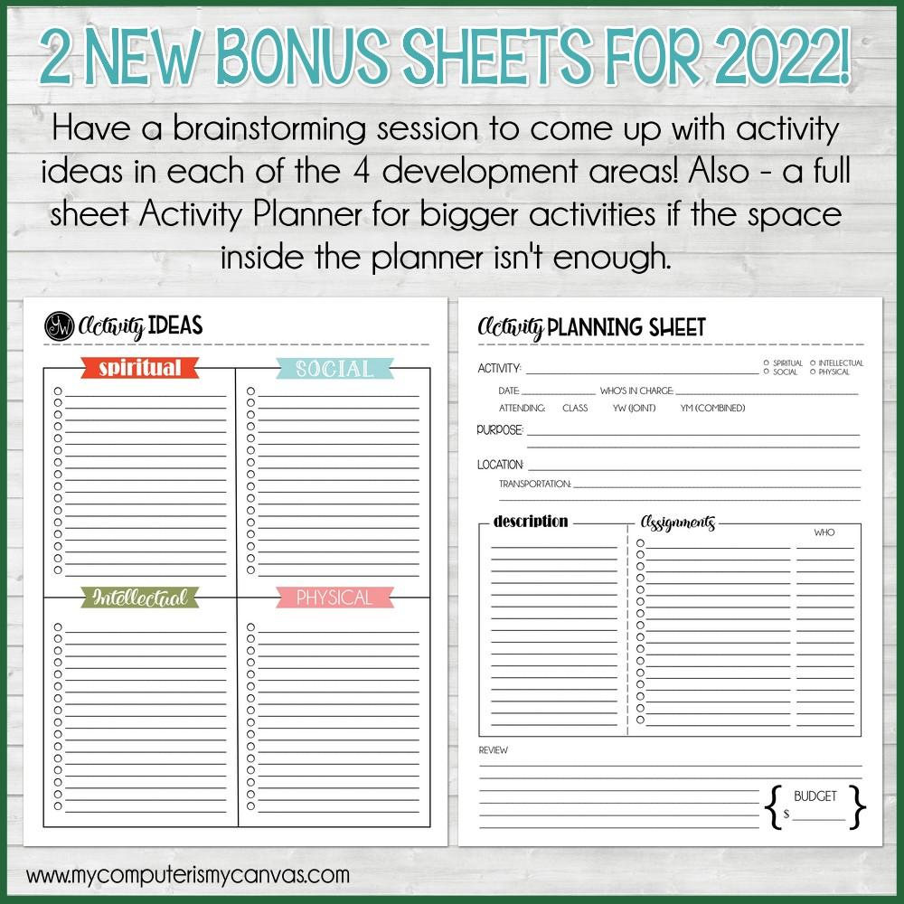 ✱ 2 New BONUS Sheets for 2022: Activity Ideas by Area & Full Sheet Activity Planner!