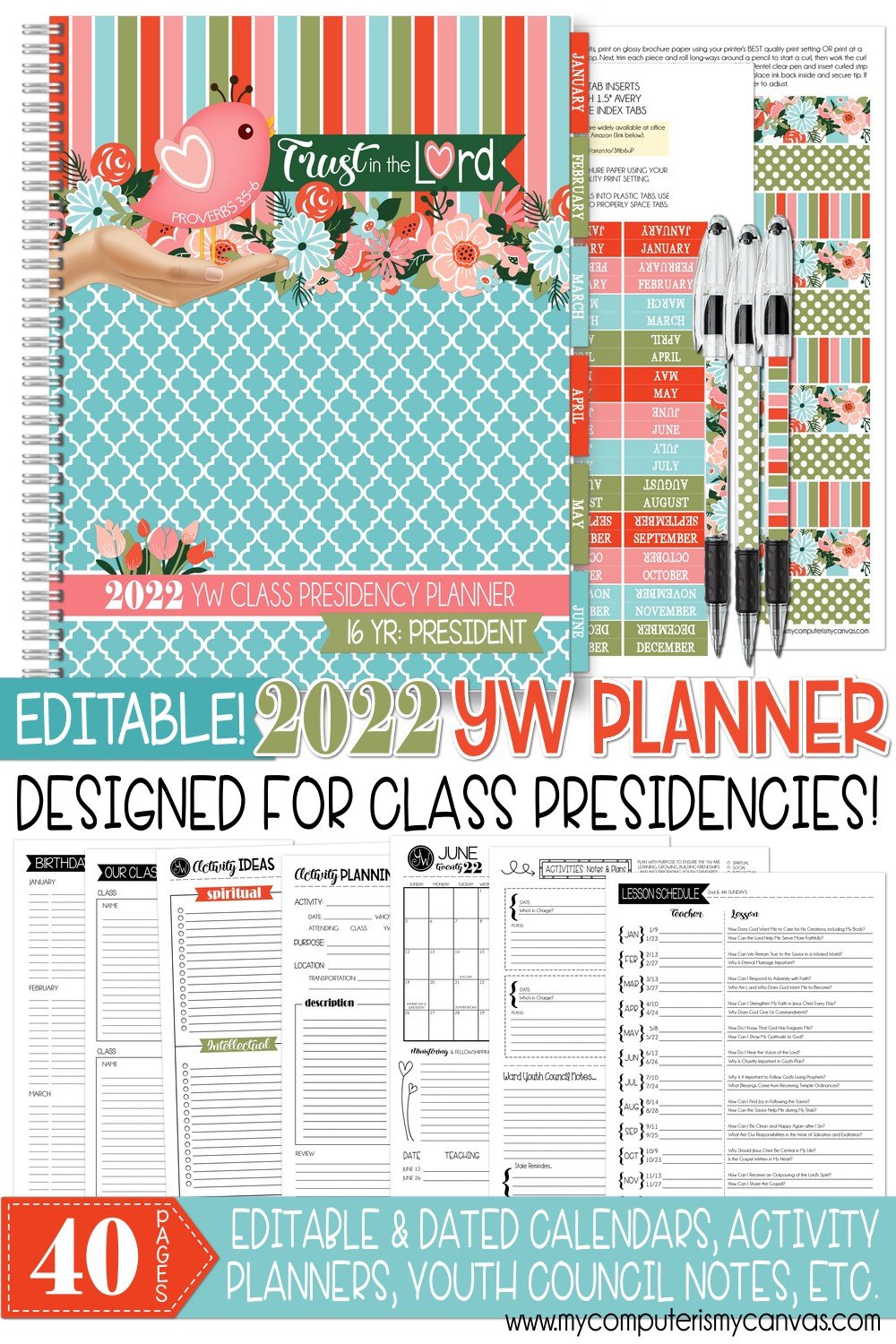 2022 YW CLASS Presidency Planner {EDITABLE} PRINTABLE