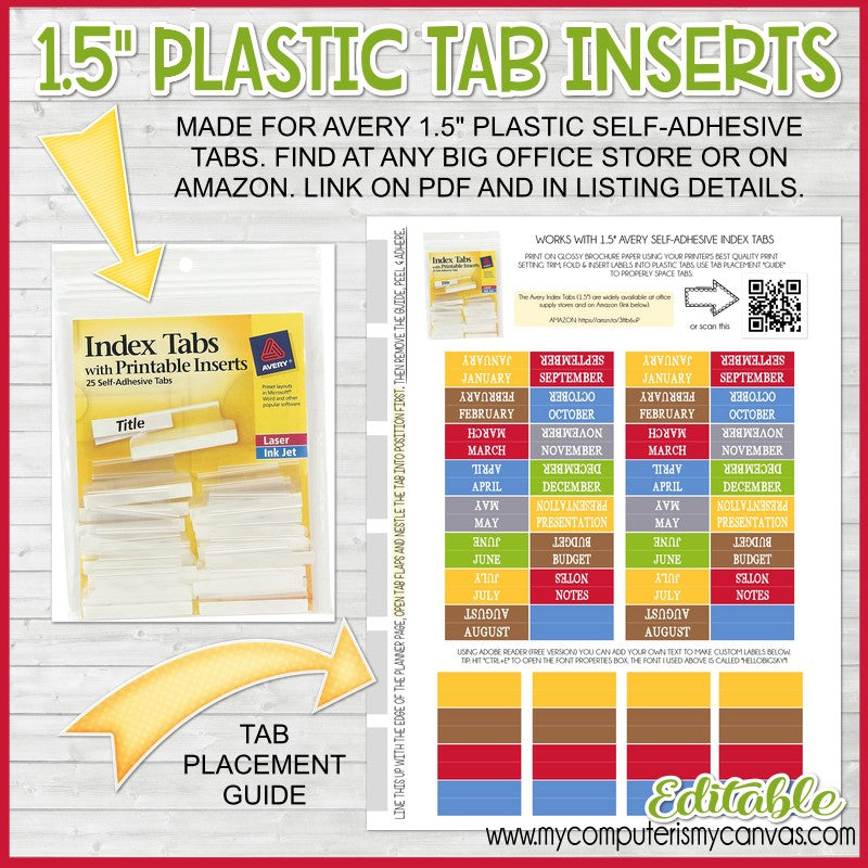 - Printable Tab Inserts (made for 1.5" Avery tabs)