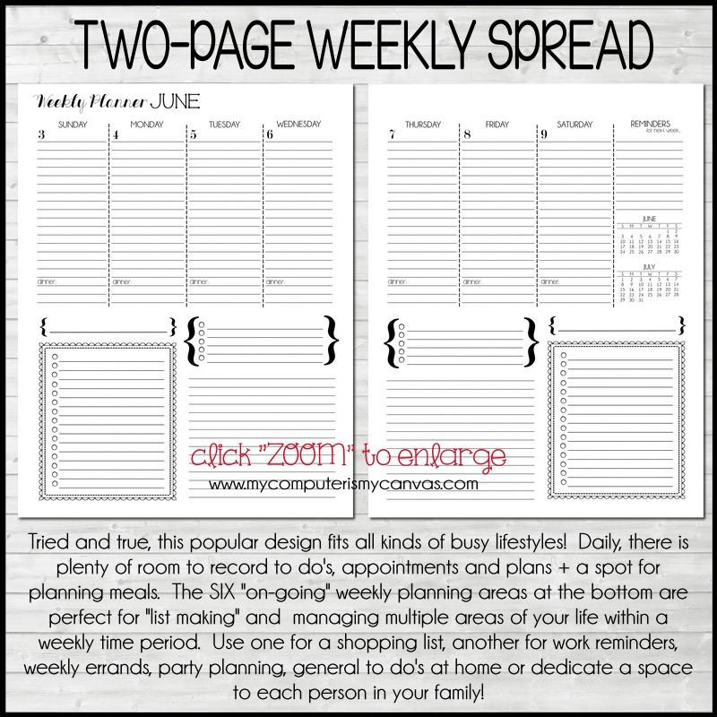 BINDING YOUR PLANNER: This planner/calendar can be printed and bound in several ways. I personally love using either the ARC or the Martha Stewart disc-bound binder system found at Staples. This planner works with Filo-Fax systems as well - OR any planner/portfolio system where you can add your own interior pages. Another great option is to have it bound by your copy store. For best results, choose "double-wire" bindings - they are MORE durable than spiral or comb. You can also choose to print double sided at home and simply put in a 3 ring binder. Important: This file is formatted for 8.5x11 printing and can fit any standard binder of this size.