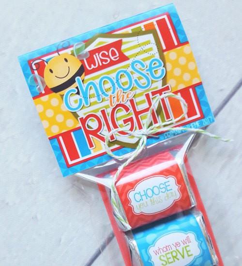 Looking for a fun way to introduce the 2017 Primary Theme, "Choose the Right"? This colorful treat decorated with words from the Theme Scripture (Joshua 24:15) will make a meaningful handout in the beginning of the year - or would make a great birthday gift, "drop-by" treat or favor for any event!
