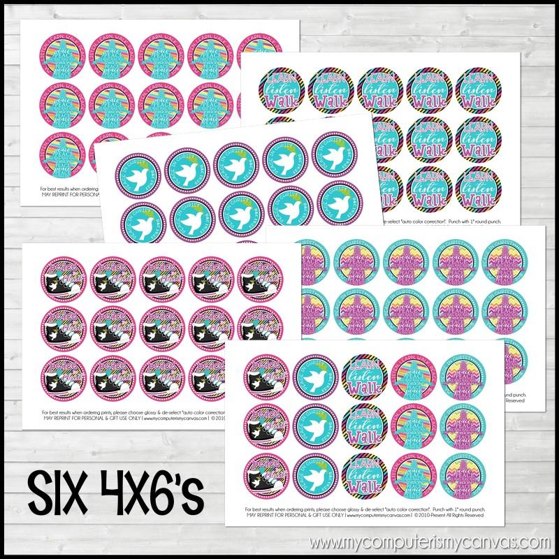 INCLUDED IN THIS LISTING: This listing includes the 1 inch "bottlecap" images as shown, each one set up on a 4x6 high resolution collage/image for photo printing, SIX 4x6's in all.