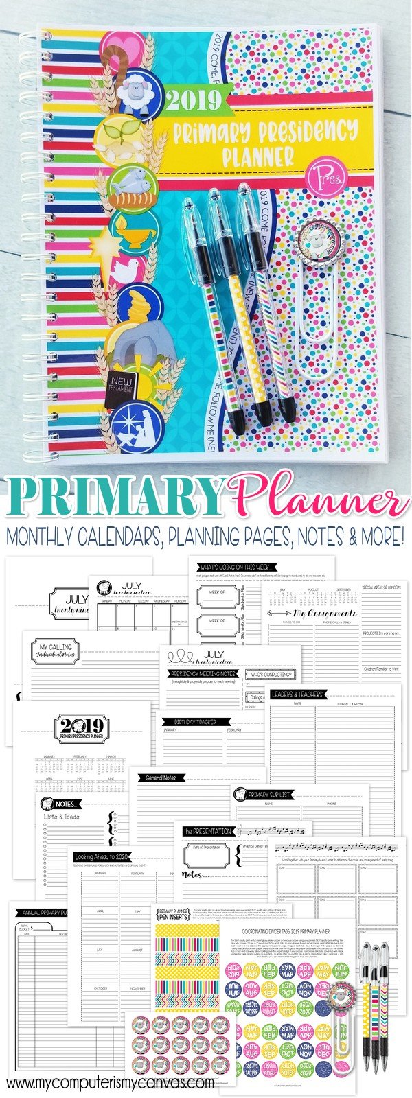 My 2019 Primary Presidency Planner is NOW AVAILABLE - and it has been updated to effectively reflect the new block changes! Also with the absence of a Sharing Time Theme, I've centered my graphics around New Testament references and the overall theme of "Come, Follow Me." At any rate, whether big or small, is a tough job and it takes a lot of planning and organization. I originally designed this planner when I served as Primary President and although I've moved on to another organization, because of its popularity, I've continued to update and add to it year after year.