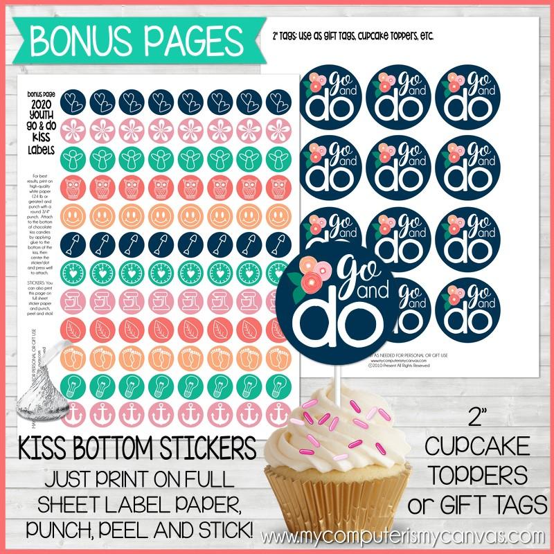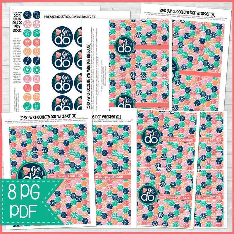 Need a cute "GO & DO" birthday gift, drop by treat for your YW or a yummy way to reinforce the 2020 Theme? This chocolate bar wrapper & kiss sticker set also coordinates with my other 2020 YW printables and includes matching cupcake toppers!