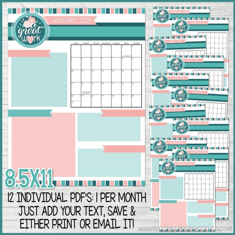 EDITABLE (using Adobe Reader): Pre-set fields are already programmed for you, simply open the PDF with the latest version of Adobe Reader (which is free) and you can add birthdays, events, etc before printing. A tip sheet is included to help you get started with the basics! Existing text, design and layout cannot be changed. Download Adobe HERE.