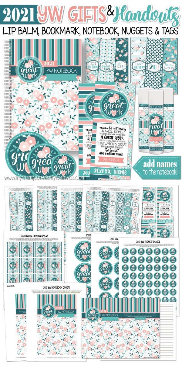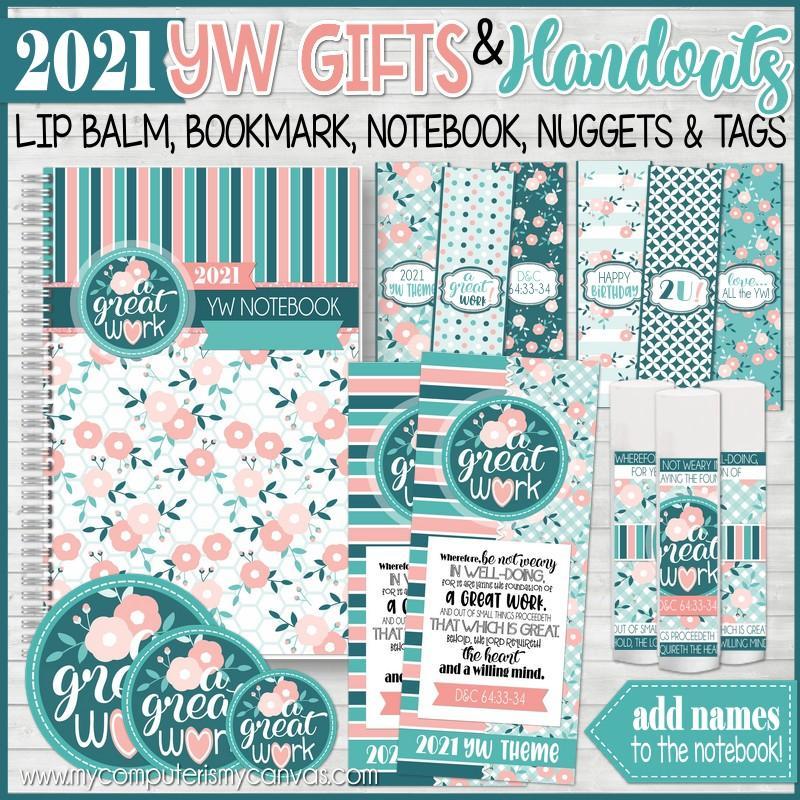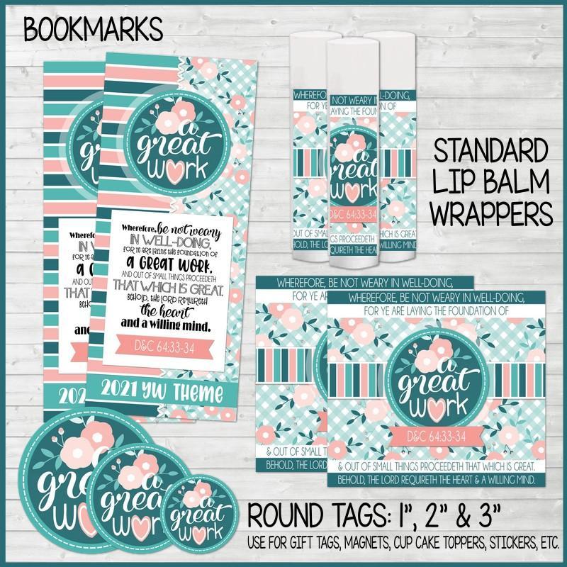 YW Leaders are always on the look out for easy, inexpensive gifts, favors and birthday gift ideas for their Young Women... as well as handouts and gifts to reinforce the theme throughout the year. This collection of printables, designed to coordinate with the 2021 YW "A GREAT WORK" Theme, will meet many of those needs!