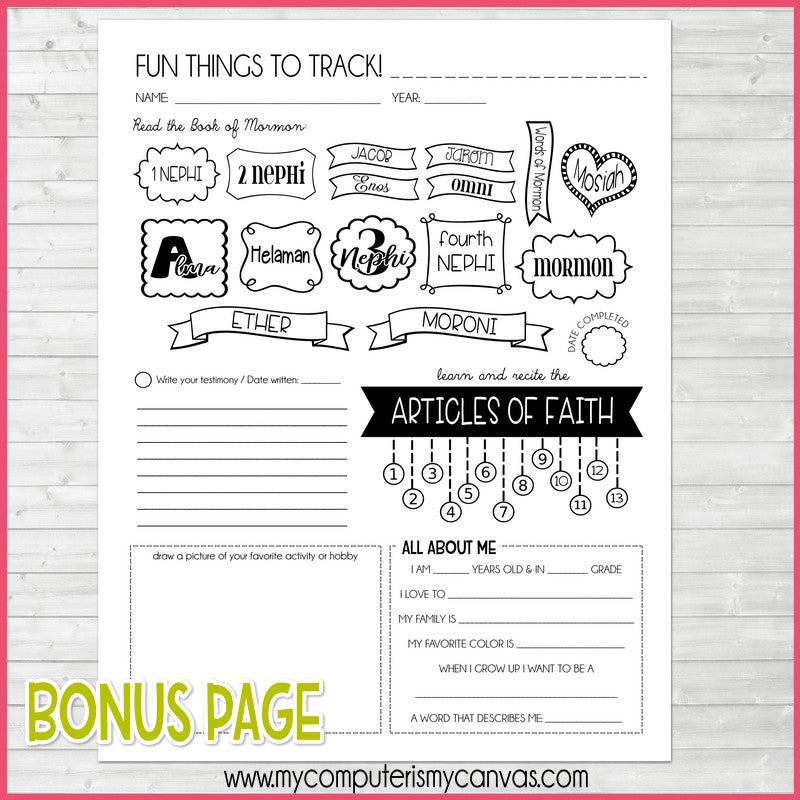 ✔ BONUS: ABOUT ME Sheet & Book of MormonTracker