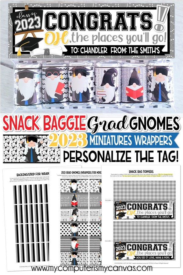 Gnome MINIATURE BAR WRAPS {2023 GRADUATION} PRINTABLE