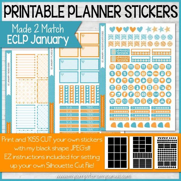 This Monthly PRINTABLE Planner Sticker Kit is "Made 2 Match" the ERIN CONDREN VERTICAL Life Planner for JANUARY! My monthly sets are designed to give you a coordinating, but very functional, collection of stickers that you'll get efficient, but very cute, use from! And, because it's printable... you can print MORE of your favorite sheets!