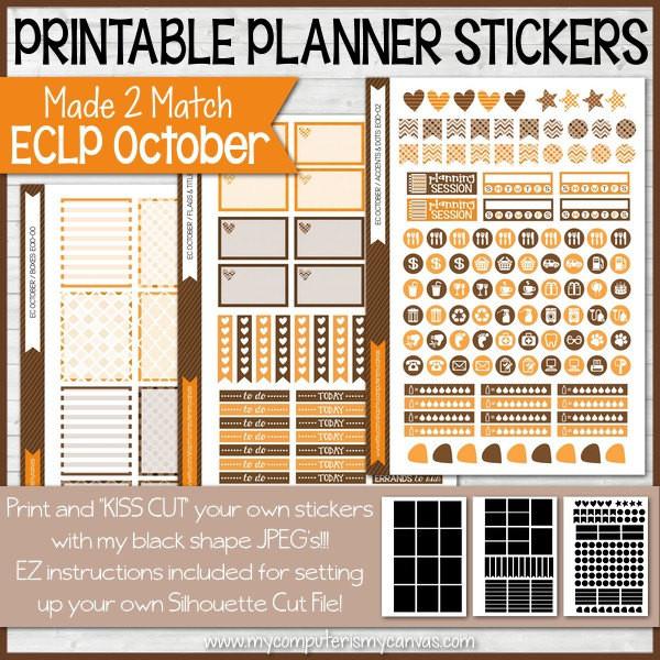 This Monthly PRINTABLE Planner Sticker Kit is "Made 2 Match" the ERIN CONDREN VERTICAL Life Planner for OCTOBER! My monthly sets are designed to give you a coordinating, but very functional, collection of stickers that you'll get efficient, but very cute, use from! And, because it's printable... you can print MORE of your favorite sheets!