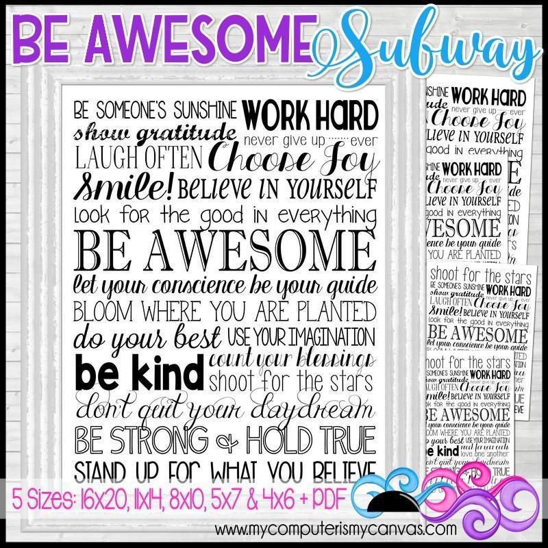 - Be Awesome Subway (5 sizes: 4x6, 5x7, 8x10, 11x14 & 16x20)