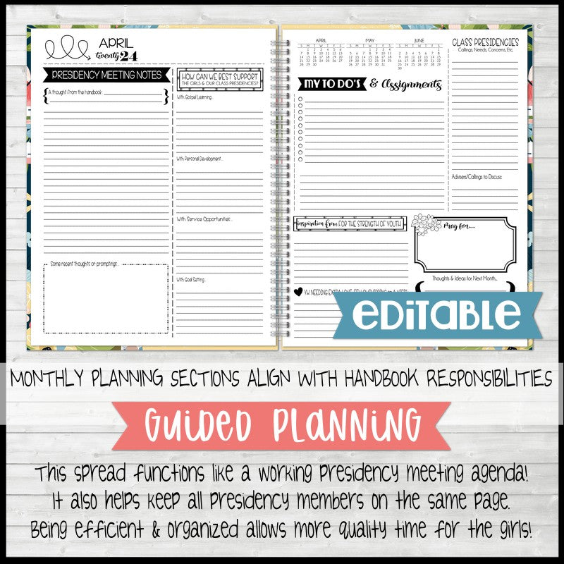 2024 YOUNG WOMEN Presidency Planner {EDITABLE} PRINTABLE