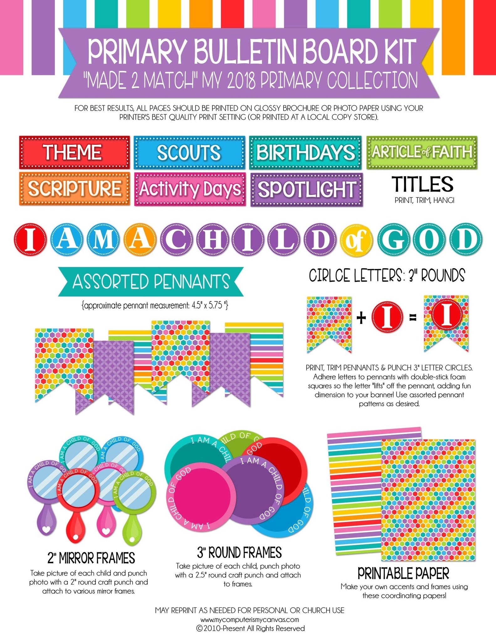 Running an efficient Primary Program is a tough job and it takes a lot of planning, organization AND an arsenal of cute handouts, favors and gifts to reinforce and celebrate the theme all year long. This 2018 Primary "I am a Child of God" Theme Bundle is packed full of everything you'll need for a creative, functional and efficient year! :)