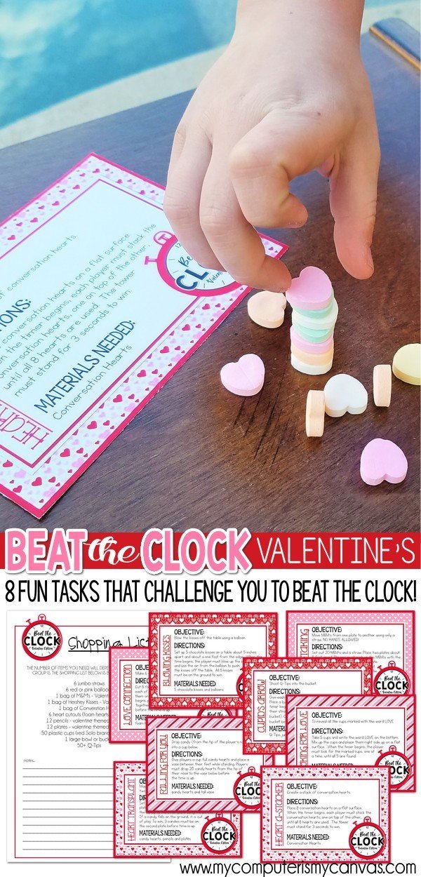 Looking for fun Valentine-themed games for a party, youth activity, classroom party or family game night game? We have put together 8 fun and easy Valentine Challenges that will having everyone racing to BEAT THE CLOCK!