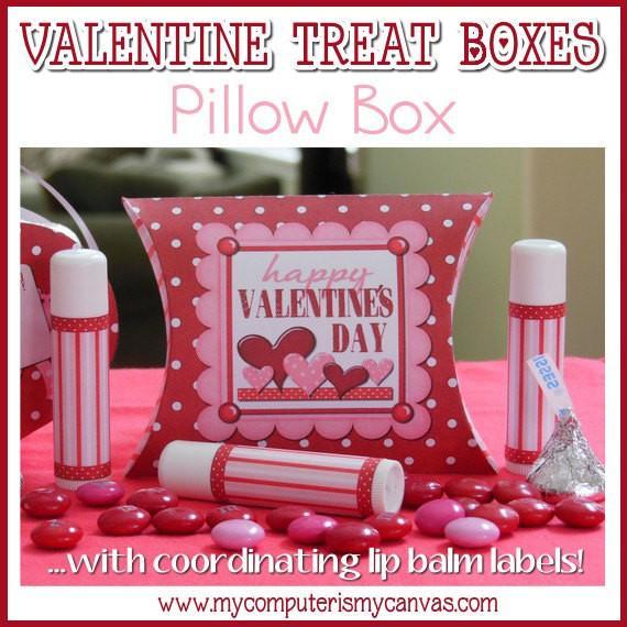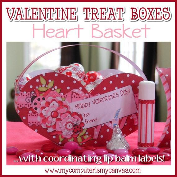 Wow your friends with these DARLING printable box templates for Valentines! Pillow Box template and Heart Basket template also come with coordinating lip balm labels to complete your Valentine treat, gift or favor!
