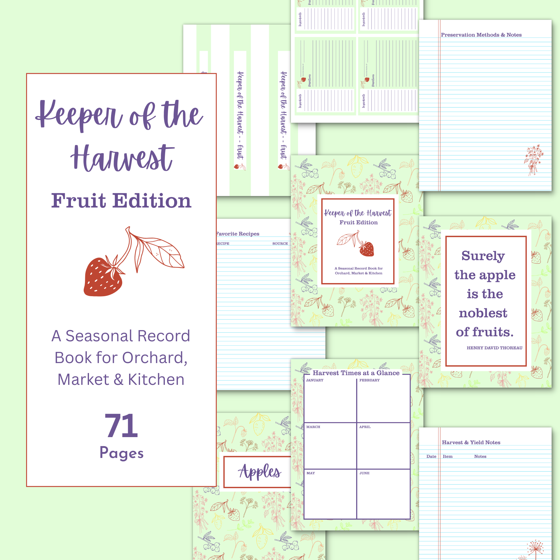 Printable Seasonal Fruit Record Book for Preservation, Recipes & Harvest Planning