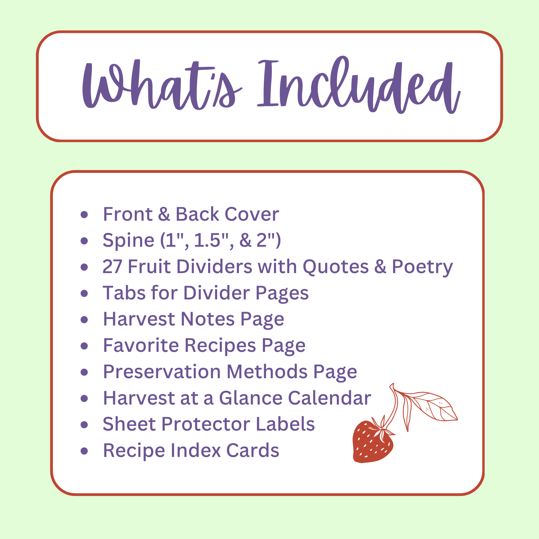 This printable 3-ring binder system helps you organize, track, and preserve your seasonal fruit knowledge — so every year gets easier, wiser, and more efficient.